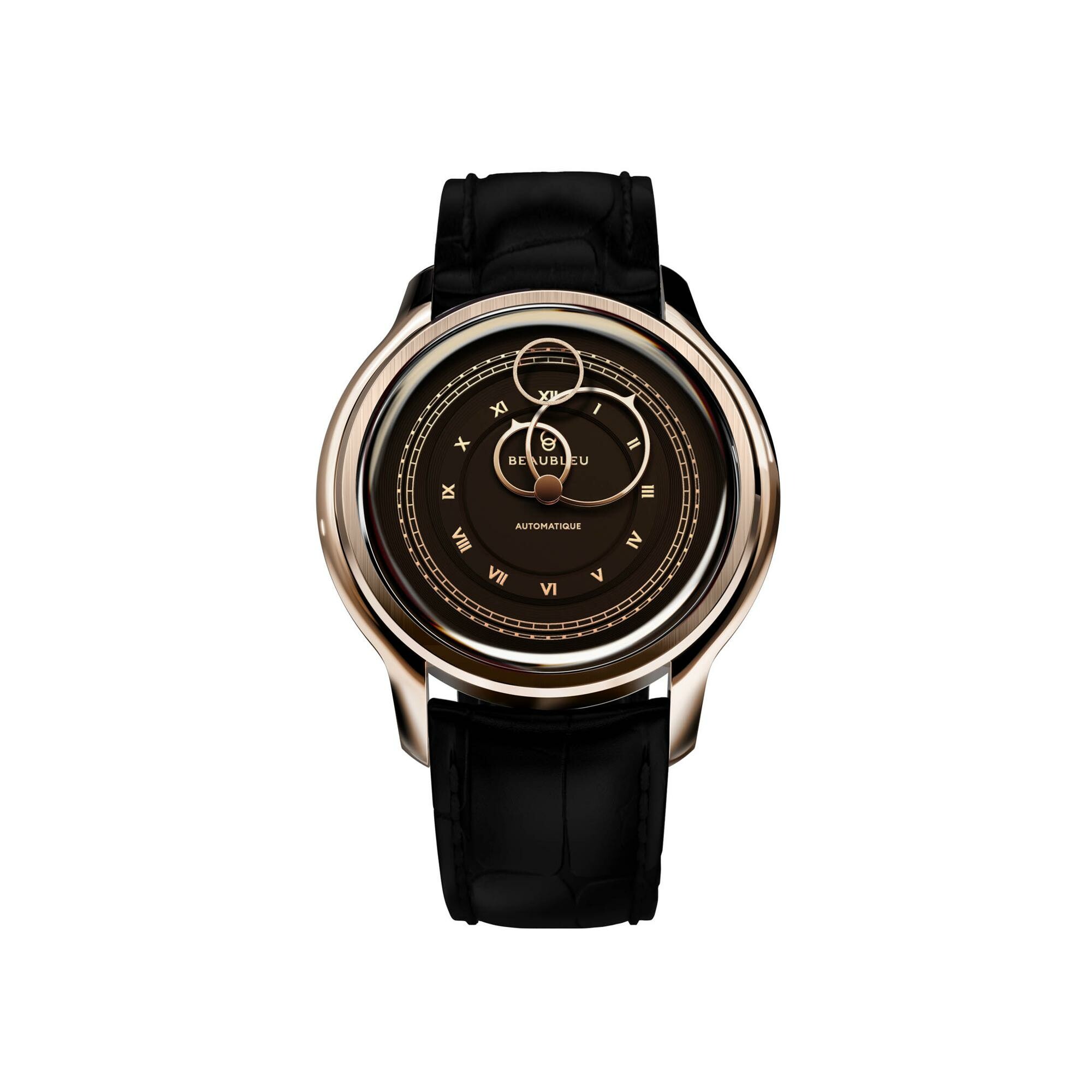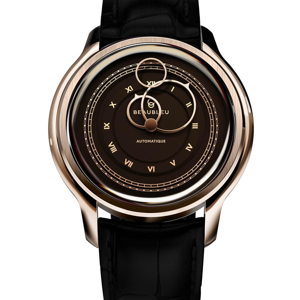 BeauBleu La Pièce N.1 mocha watch with black alligator leather strap