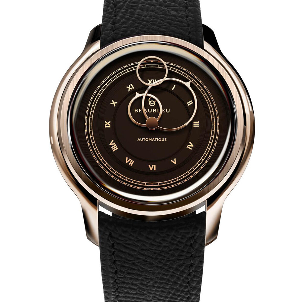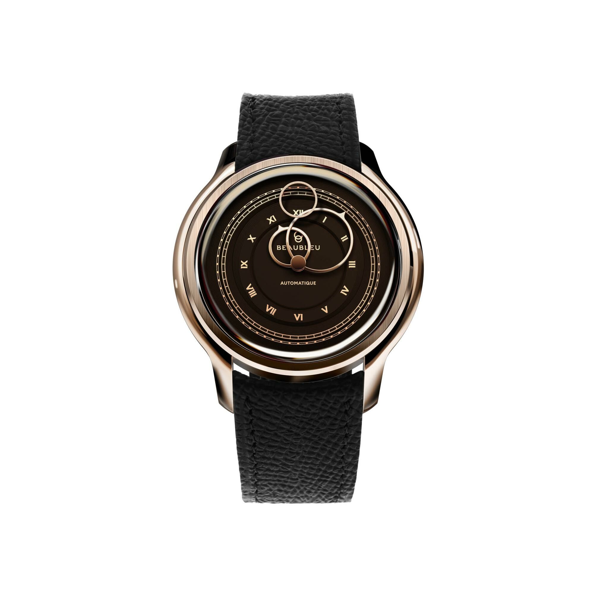 BeauBleu La Pièce N.1 Mocha watch with black grained leather strap