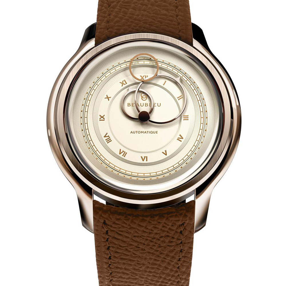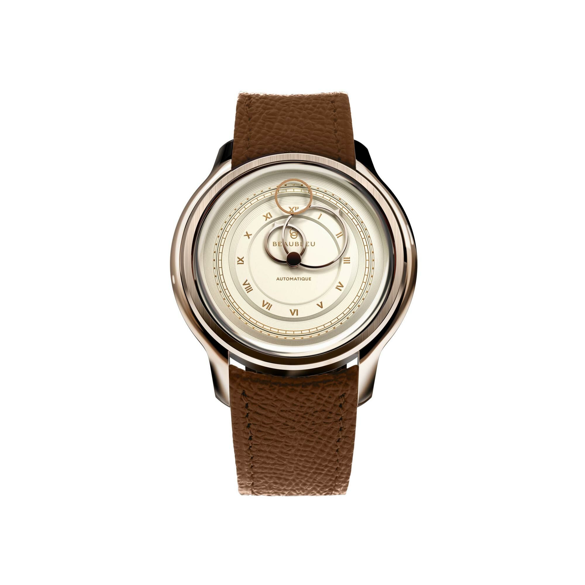 BeauBleu La Pièce N.1 watch in champagne with cognac grained leather strap