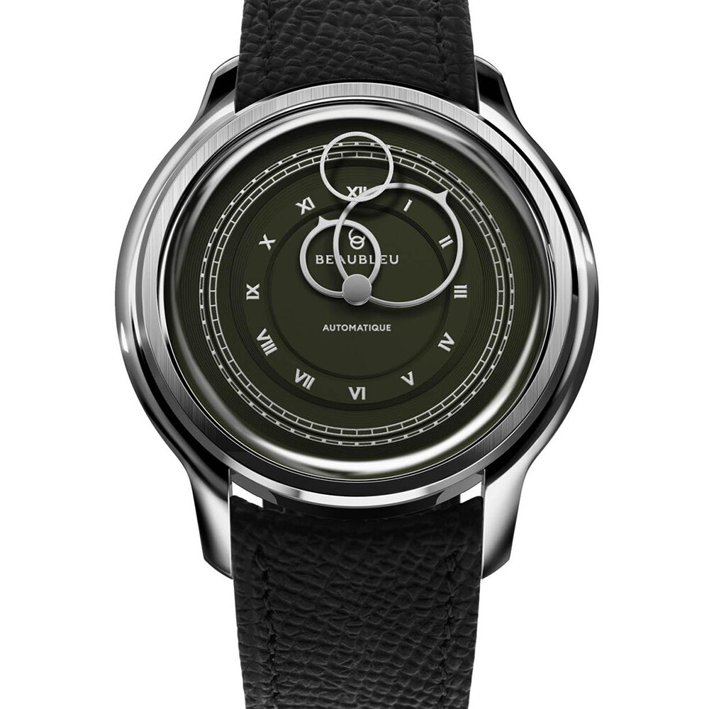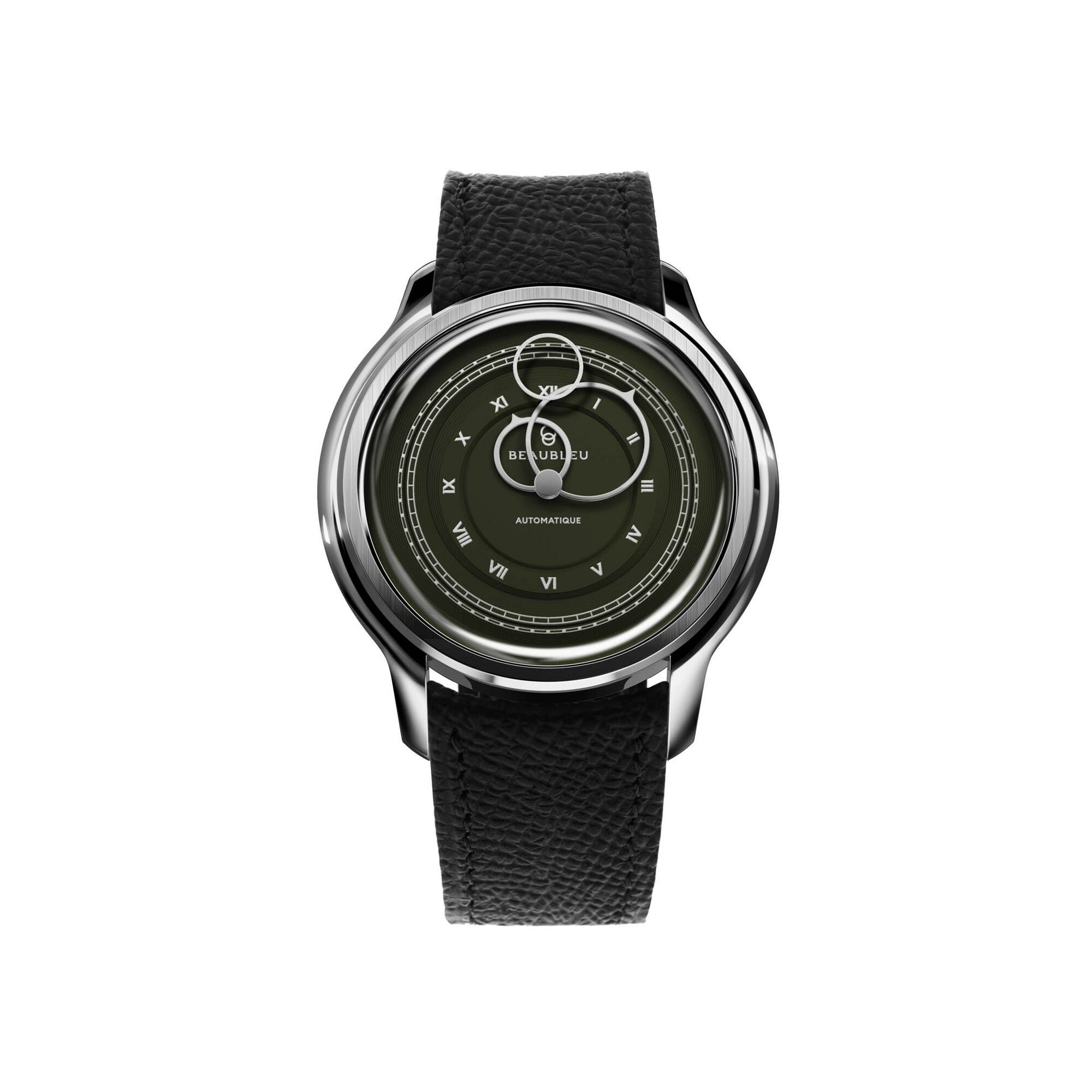 BeauBleu La Pièce N.1 watch in olive green with black grained leather strap