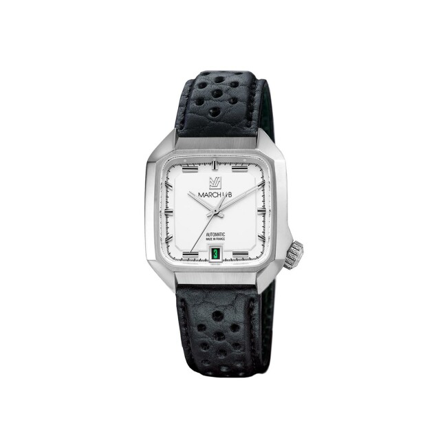 AM2 Slim Montre March LA.B AM2 Slim Automatique - White - Bison Sauvage Perforé Noir