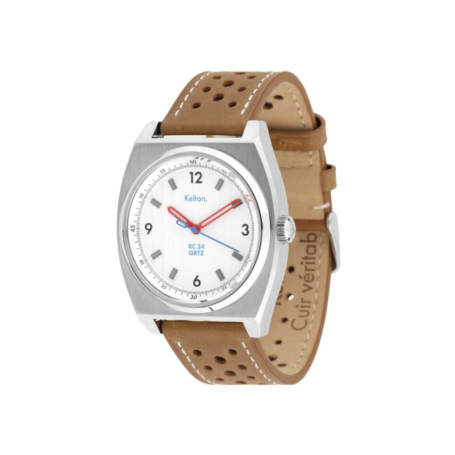 RC Montre Kelton RC24 Quartz Blanche – Bracelet Marron