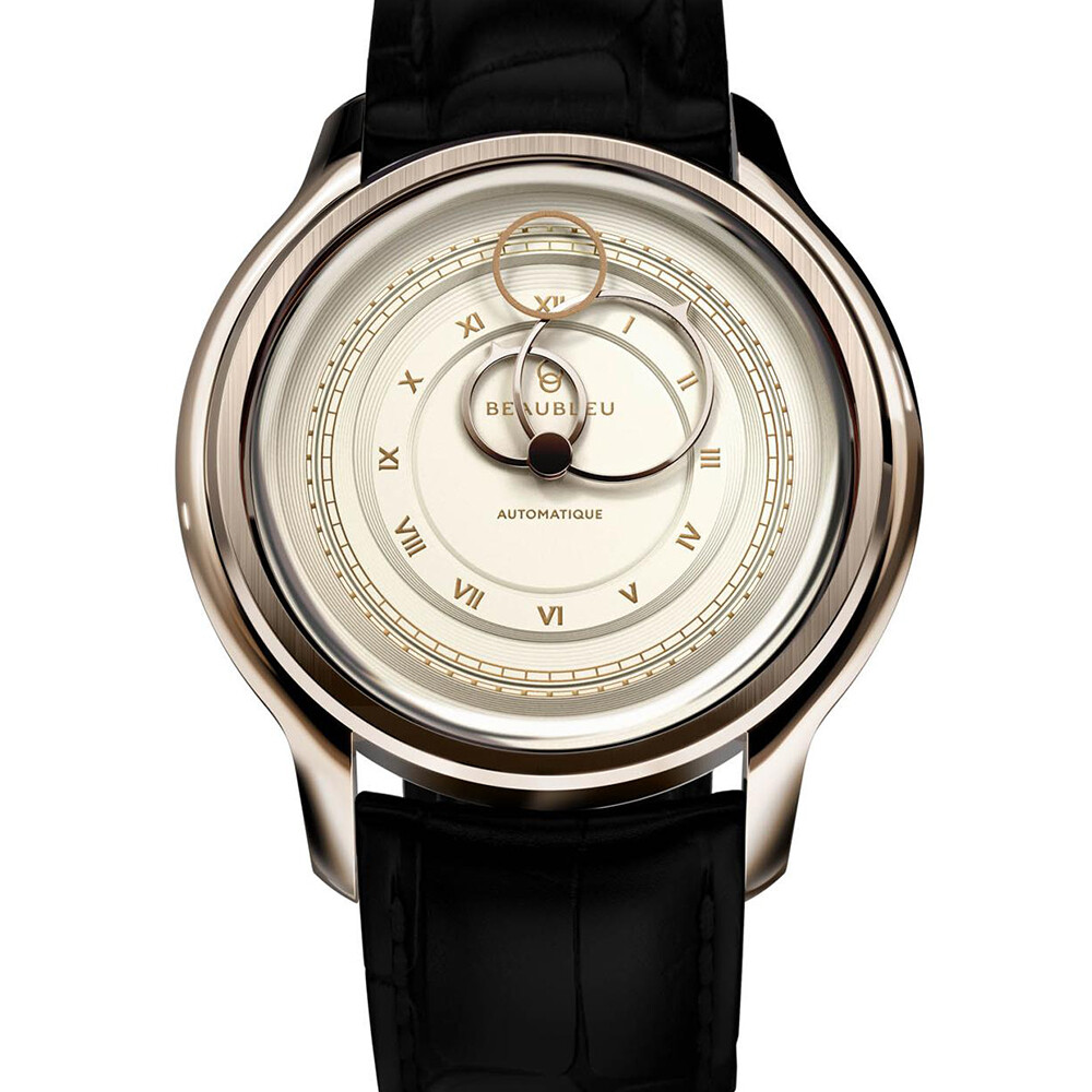 Montre BeauBleu La Pièce N.1 champagne bracelet en cuir noir caïman