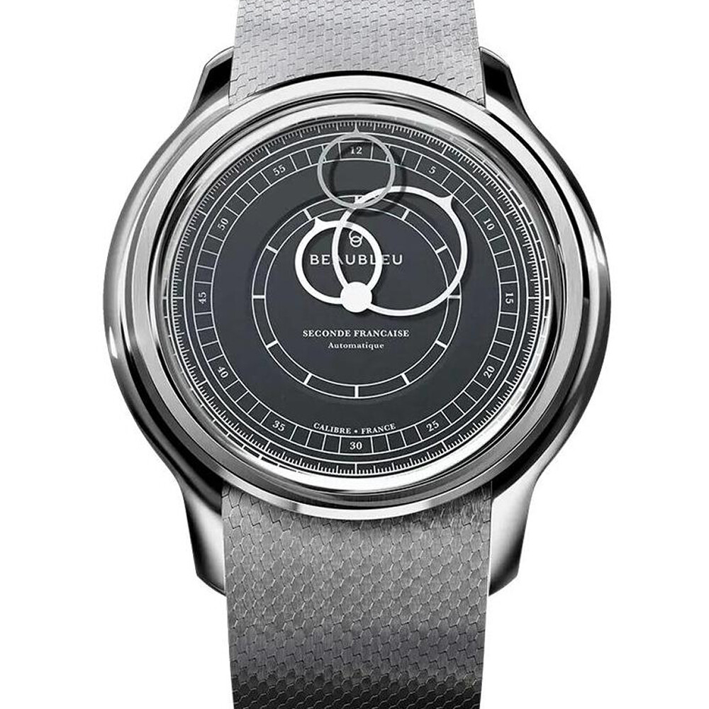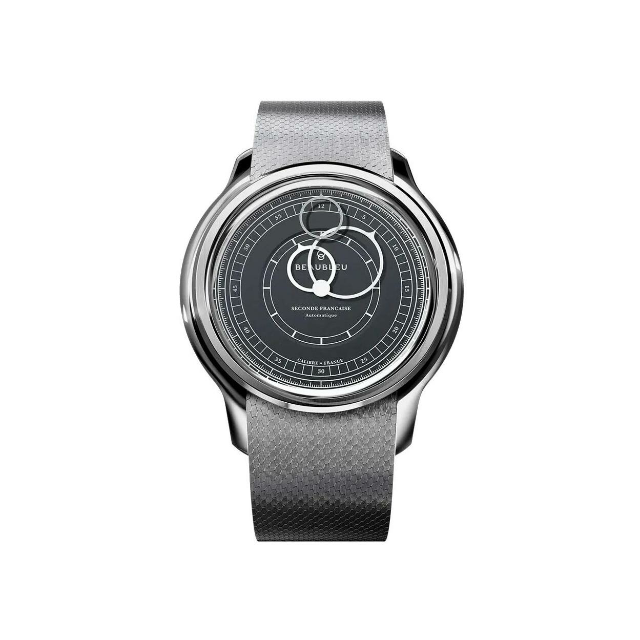 Seconde Française Montre BeauBleu Seconde Française grey anthracite bracelet noir grainé