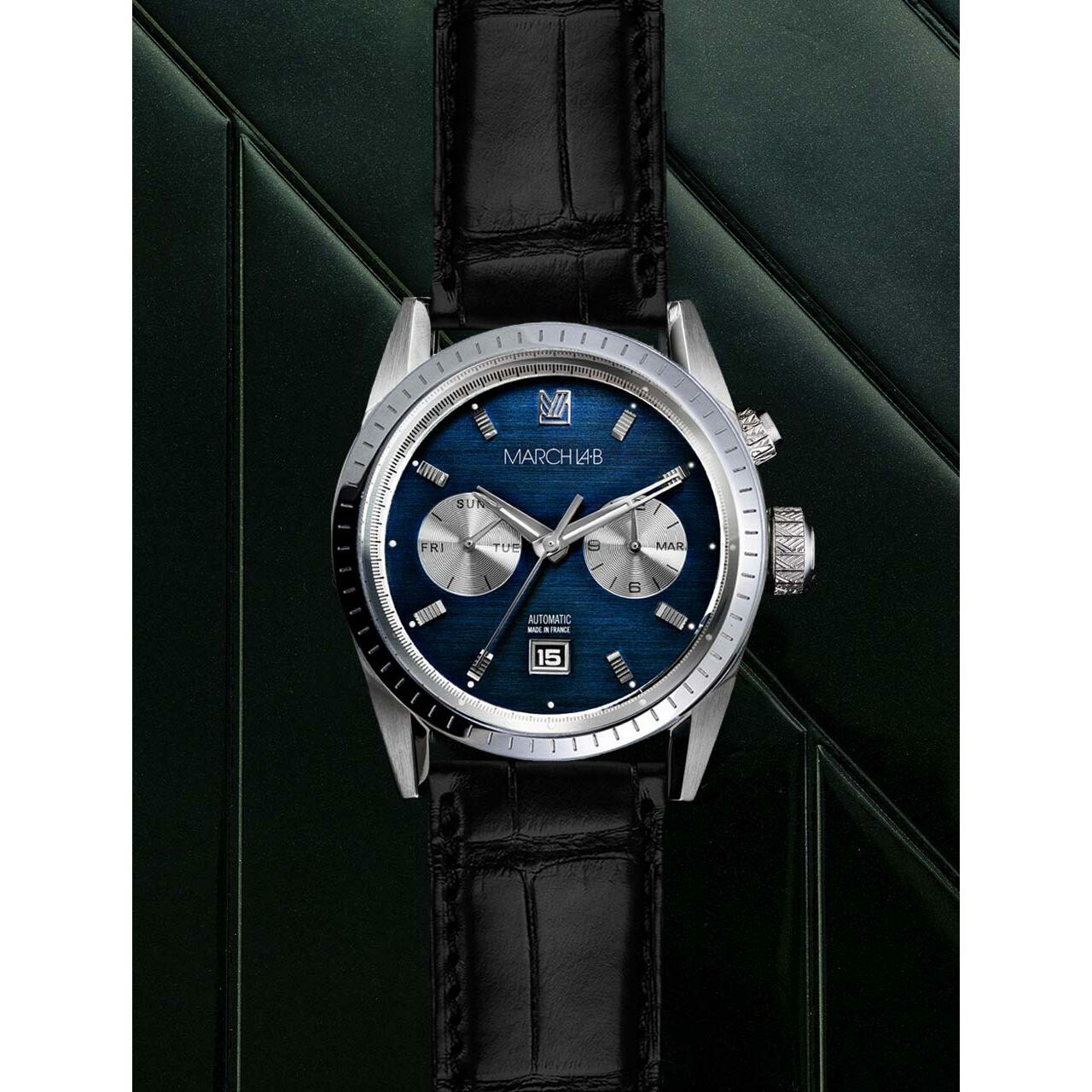 Montre March LA.B Agenda Supra Automatique - Navy - Alligator Noir