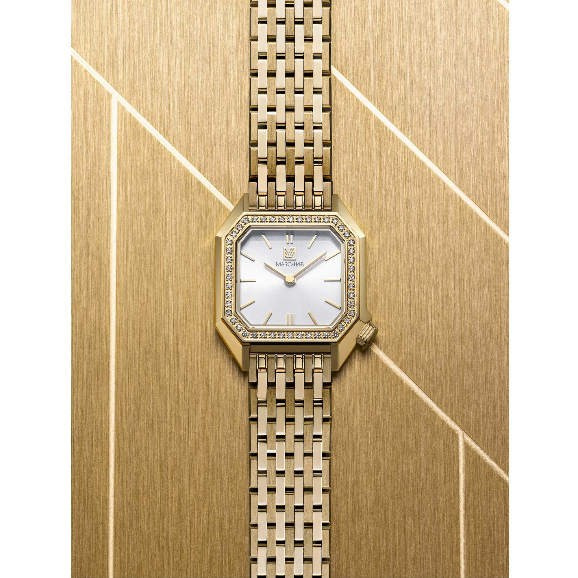 Montre March LA.B Lady Mansart Electrique - Diamants Or 18k - Acier Poli-Brossé 9 maillons Plaqué Or
