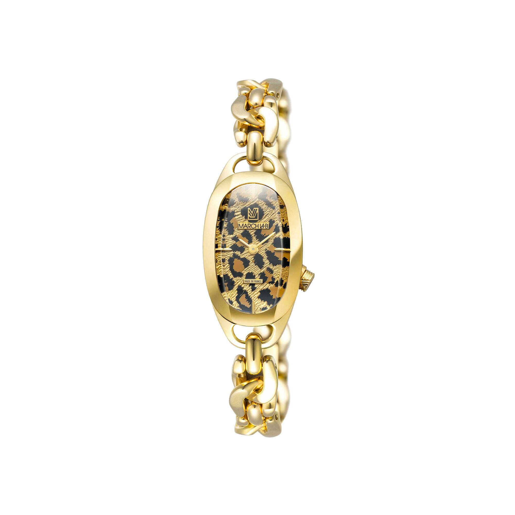 Montre March LA.B Oblongue Electrique - Cheetah - Gourmette dorée